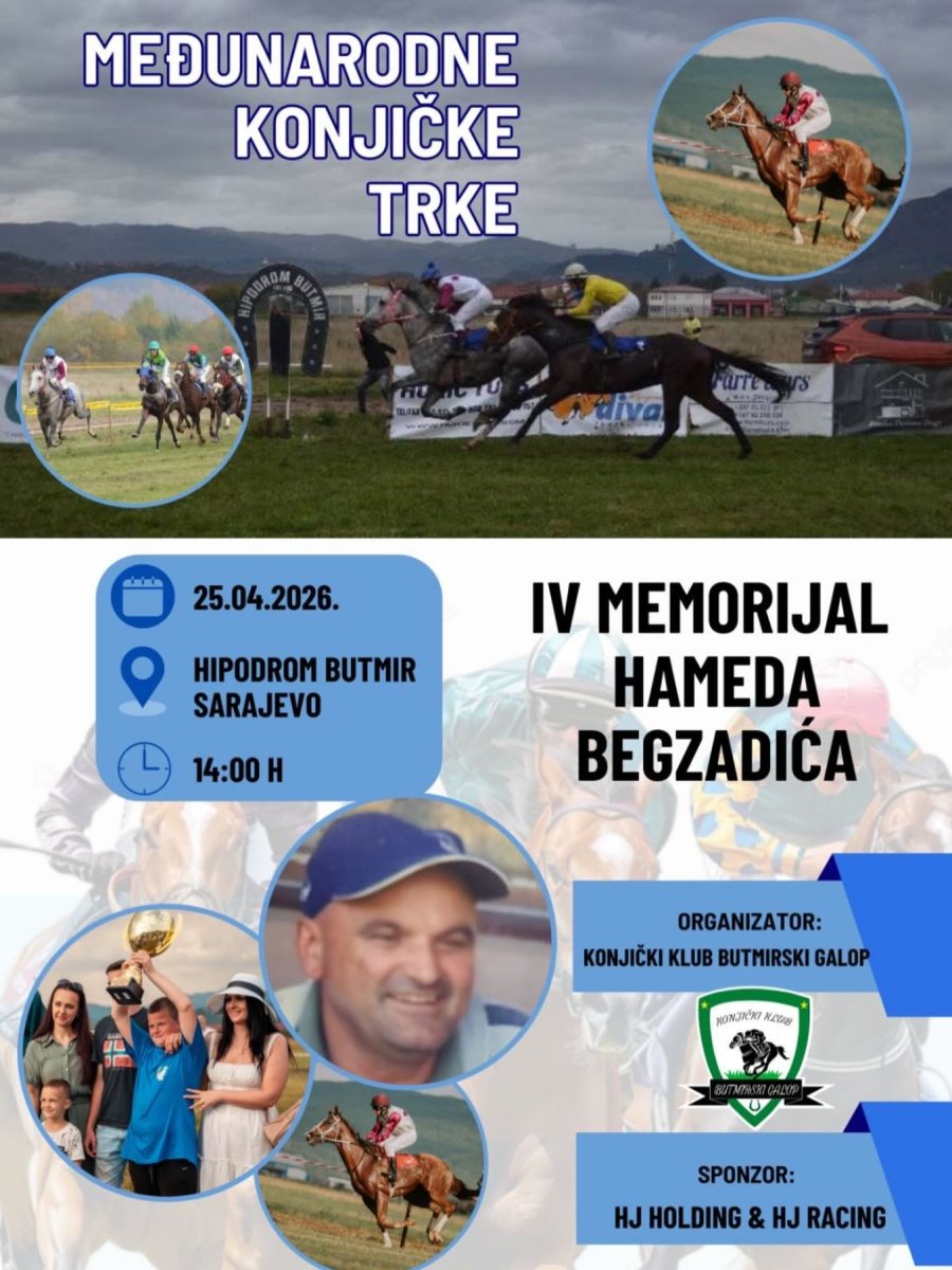 Pozivamo vas na Međunarodne konjičke trke koje će se održati na hipodromu Butmir, dana 25.04.2026. godine.